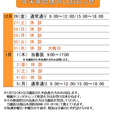 ※眼鏡処方の受付は、午前は11:30まで、午後は17:30まで、土曜日は12:00までとなっております。