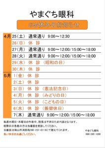 R8年4月29日(水)からR8年5月6日(水)まで休診とさせていただきます。